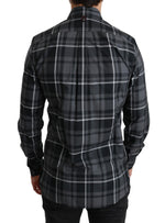 Dolce & Gabbana Gray Checkered Heart Collar MARTINI Shirt