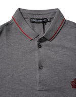 Dolce & Gabbana Gray Cotton Crown Collared Polo T-shirt