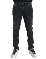 Dolce & Gabbana Gray Cotton Stretch Skinny Denim Logo Jeans