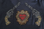 Absolutely stunning, 100% Authentic, brand new with tags Dolce & Gabbana gray cotton red Crystal Heart embroidered Gun pullover sweater.