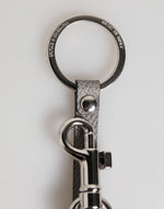 Dolce & Gabbana Gray Leather Logo Metal Ring Keychain Holder Men Keyring