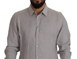 Dolce & Gabbana Gray Linen Long Sleeves Formal GOLD Shirt