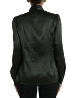 Dolce & Gabbana Gray Long Sleeves Ascot Collar Blouse Top