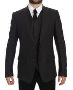 Dolce & Gabbana Gray Slim Fit Linen Blazer Jacket