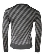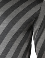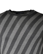 Dolce & Gabbana Gray Stripes Long Sleeve Round Neck Pullover Sweater