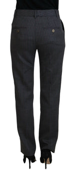 Dolce & Gabbana Gray Stripes Wool Tapered Women Pants