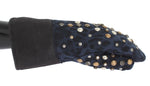 Dolce & Gabbana Gray Wool Shearling Studded Blue Leopard Gloves