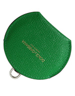Dolce & Gabbana Green Calfskin Leather Round Logo Hand Mirror Holder