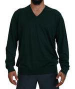 Dolce & Gabbana Green Cashmere V-neck Pullover Sweater