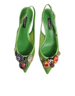 Dolce & Gabbana Green Embellished Heels Slingbacks Shoes