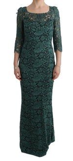 Dolce & Gabbana Green Floral Crystal Ricamo Sheath Dress