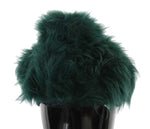 Dolce & Gabbana Green Fur DG Logo Embroidered Cloche Hat