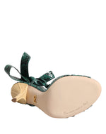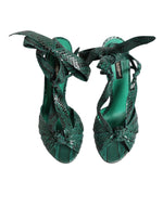 Dolce & Gabbana Green Python Leather Heels Sandals Shoes