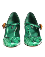 Dolce & Gabbana Green Silk MARY JANES Leaf Sandals Shoes