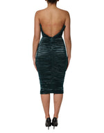 Dolce & Gabbana Green Silk Satin Fitted Strapless Dress