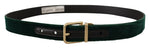 Dolce & Gabbana Green Velvet Leather Gold Metal Logo Belt