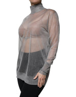 Dolce & Gabbana Grey Mesh Turtleneck Long Sleeve Blouse Top