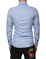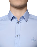Dolce & Gabbana Light Blue Cotton Slim Fit GOLD Dress Shirt