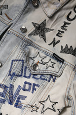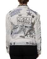 Dolce & Gabbana Light Blue Graffiti Button Down Denim Jacket