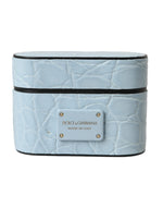 Dolce & Gabbana Light Blue Leather Metal Logo Plaque Airpods Case