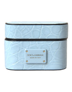 Dolce & Gabbana Light Blue Leather Metal Logo Plaque Airpods Case