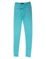 Dolce & Gabbana Light Blue Nylon Logo Lace Leggings Pants Underwear