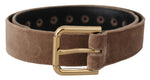 Dolce & Gabbana Light Brown Velvet Gold Tone Logo Metal Buckle Belt