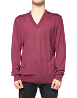 Dolce & Gabbana Maroon Cashmere V-neck Men Pullover Sweater