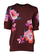 Dolce & Gabbana Maroon Floral Silk Crew Neck Blouse Top
