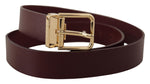 Dolce & Gabbana Maroon Vitello Leather Gold Metal Buckle Belt