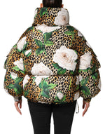 Dolce & Gabbana Multicolor Leopard Rose Puffer Quilted Jacket
