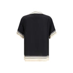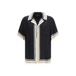 The Hawaii Shirt with logo and striped print by Dolce & Gabbana delivers a sophisticated summer style with distinctive character. Crafted in a multicolour Hawaii base, it stands out for its graphic mix of logo and stripes that enhances its contemporary identity. The Vanity collar and front chest pocket with piping add a refined detail, while the short sleeves complete its relaxed yet polished silhouette. A perfect piece for elegant summer looks with strong personality.