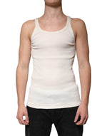 Dolce & Gabbana Off White Cotton Sleeveless Round Neck Tank T-shirt