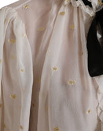 Dolce & Gabbana Off White Silk Blend Ascot Collar Blouse Top