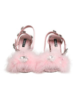 sandals exude glamorous charm and luxury. Crafted in soft pink tone, the design features crystal embellishments that shimmer with every step and plush fur accents for a touch of opulence. The open-toe silhouette and slender straps highlight feminine elegance, while the high heel adds graceful height. A statement piece that perfectly balances playful allure and refined sophistication.
