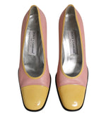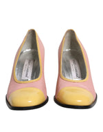 Dolce & Gabbana Pink Yellow Leather Block Heels Pumps Shoes
