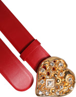 Dolce & Gabbana Red Calf Leather Embellished Metal Buckle Belt