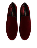 Dolce & Gabbana Red Cotton Velvet Slip On Loafers Formal Shoes