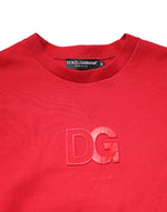 Dolce & Gabbana Red Embossed Logo Cotton Crew Neck Sweater