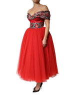 Dolce & Gabbana Red Floral Off Shoulder A-line Gown Dress