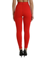 Dolce & Gabbana Red Nylon Stretch Slim Leggings Pants