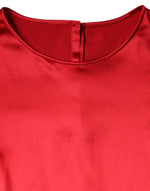 Dolce & Gabbana Red Satin Lace Trim Round Neck Blouse Top