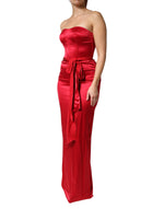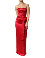Dolce & Gabbana Red Silk Strapless Sheath Long Gown Dress