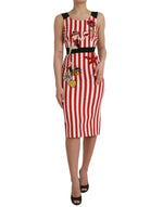 Dolce & Gabbana Red White Floral Sleeveless Sheath Midi Dress