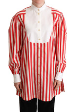 Dolce & Gabbana Red White Striped Long Sleeves Formal Shirt
