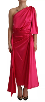 Dolce & Gabbana Silk Pink Fitted Cut One Shoulder Midi Dress