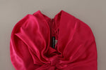 Gorgeous, 100% Authentic Dolce & Gabbana fuchsia, a fitted cut, accentuated by a large bow, and an open left shoulder. Large draperies on the bodice and hem soften the silhouette and give the thing a similarity to the ancient Greek tunic.