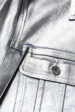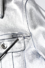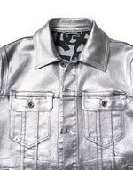Dolce & Gabbana Silver Cotton Button Down Denim Biker Jacket