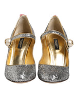 Dolce & Gabbana Silver Glitter Mink Fur VALLY Pumps Shoes