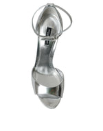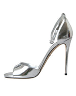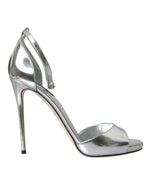 Dolce & Gabbana Silver KEIRA Leather Heels Sandals Shoes